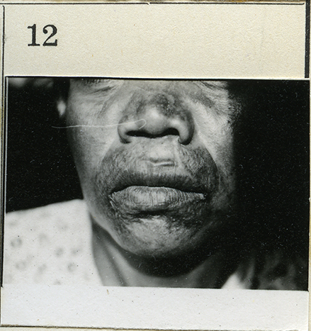 ‘Your mouth’ (silver gelatin proof) is the earliest image I have sourced of my grandmother, a proof sheet from the archives of the South Australian Museum in Adelaide in the Cecil J. Hackett Collection. Hackett was a doctor who studied diseases among Aboriginal communities in the Northern Territory and my grandmother was one of his subjects. The image of her mouth was taken on 17 May 1934, exactly 30 years before my birth, and the text accompanying the proof-sheet image is: 'Proof number 11-12 Annotated "Bessie Croft Chinese/native H/C”’, with H/C standing for ‘Half-Caste.'