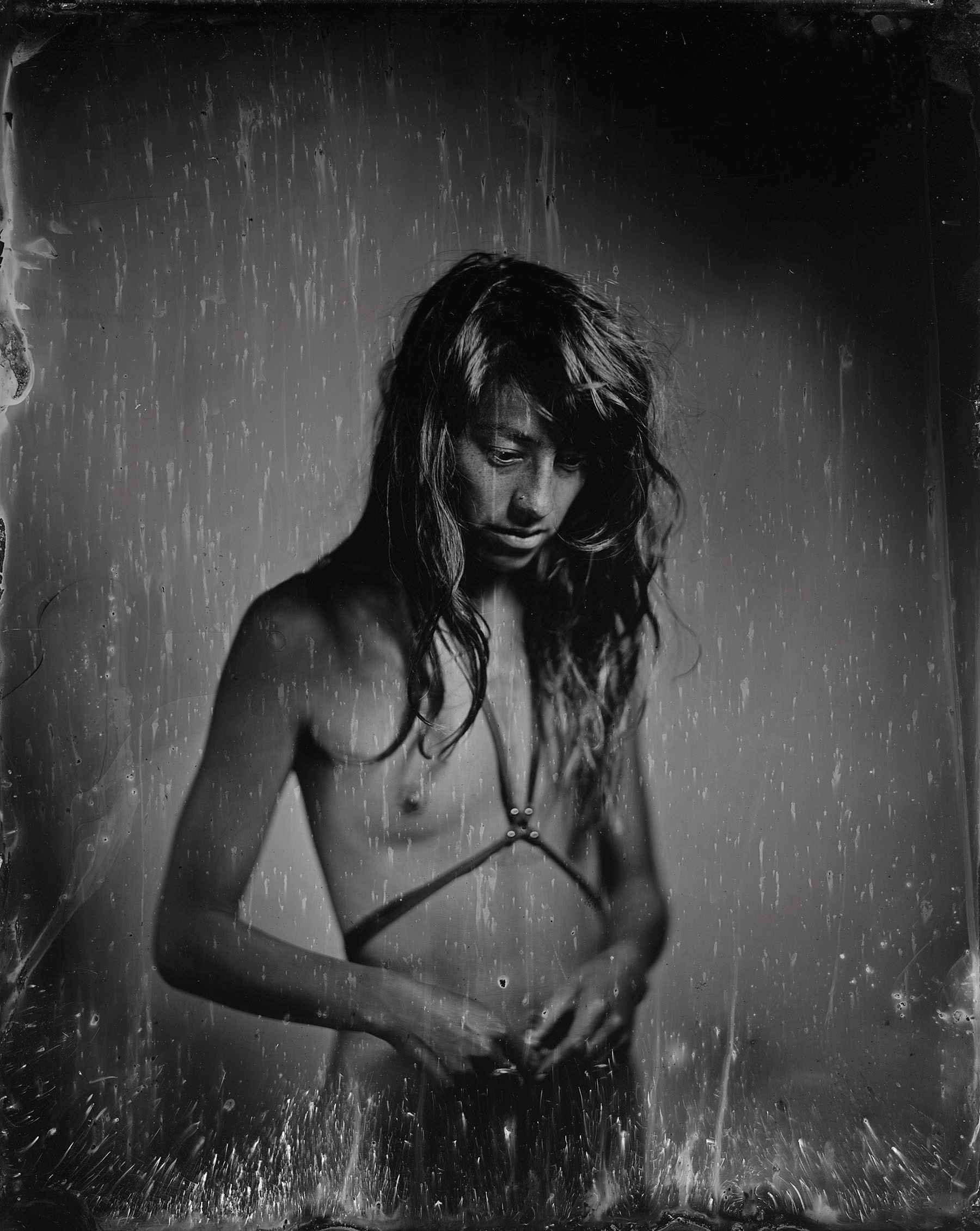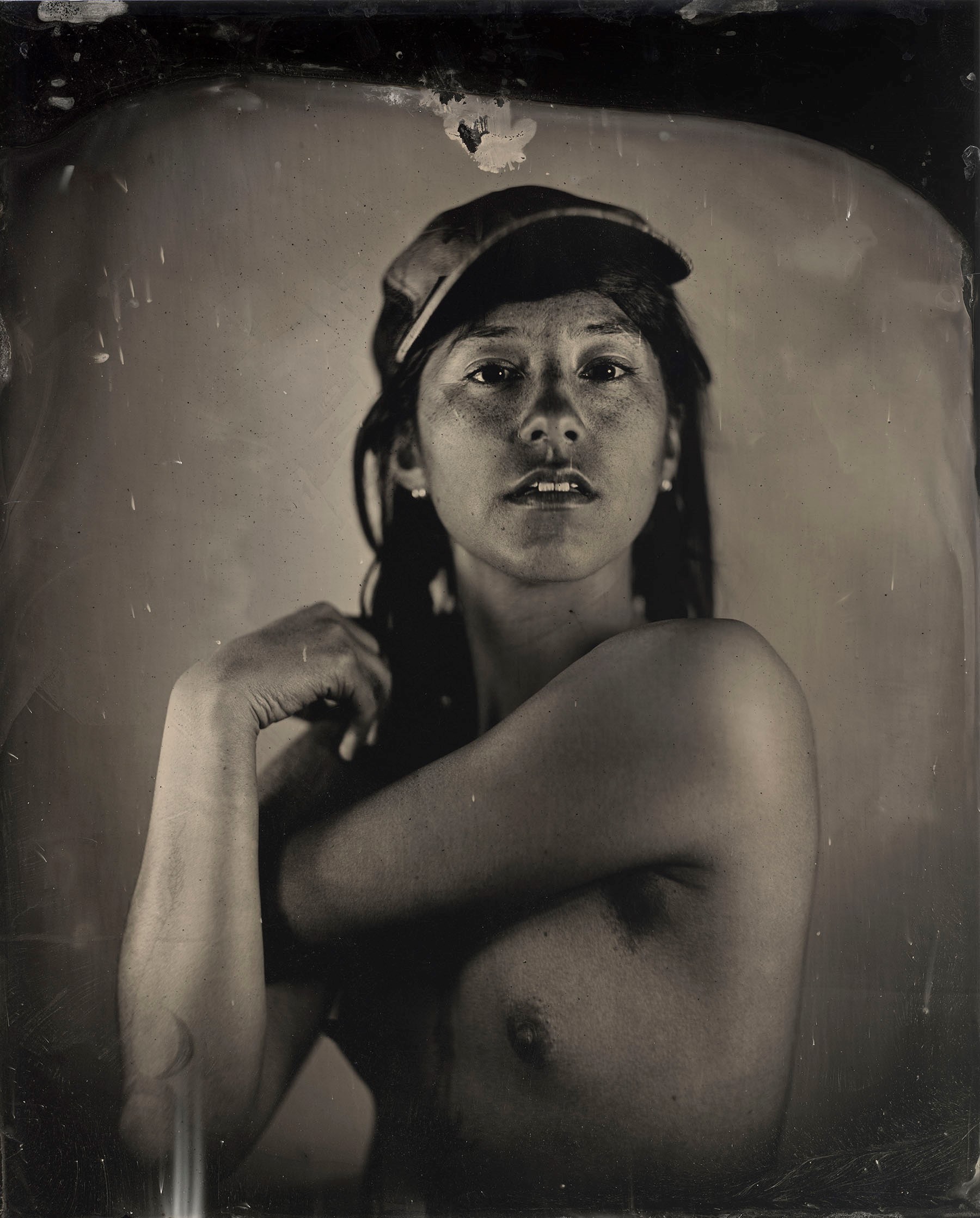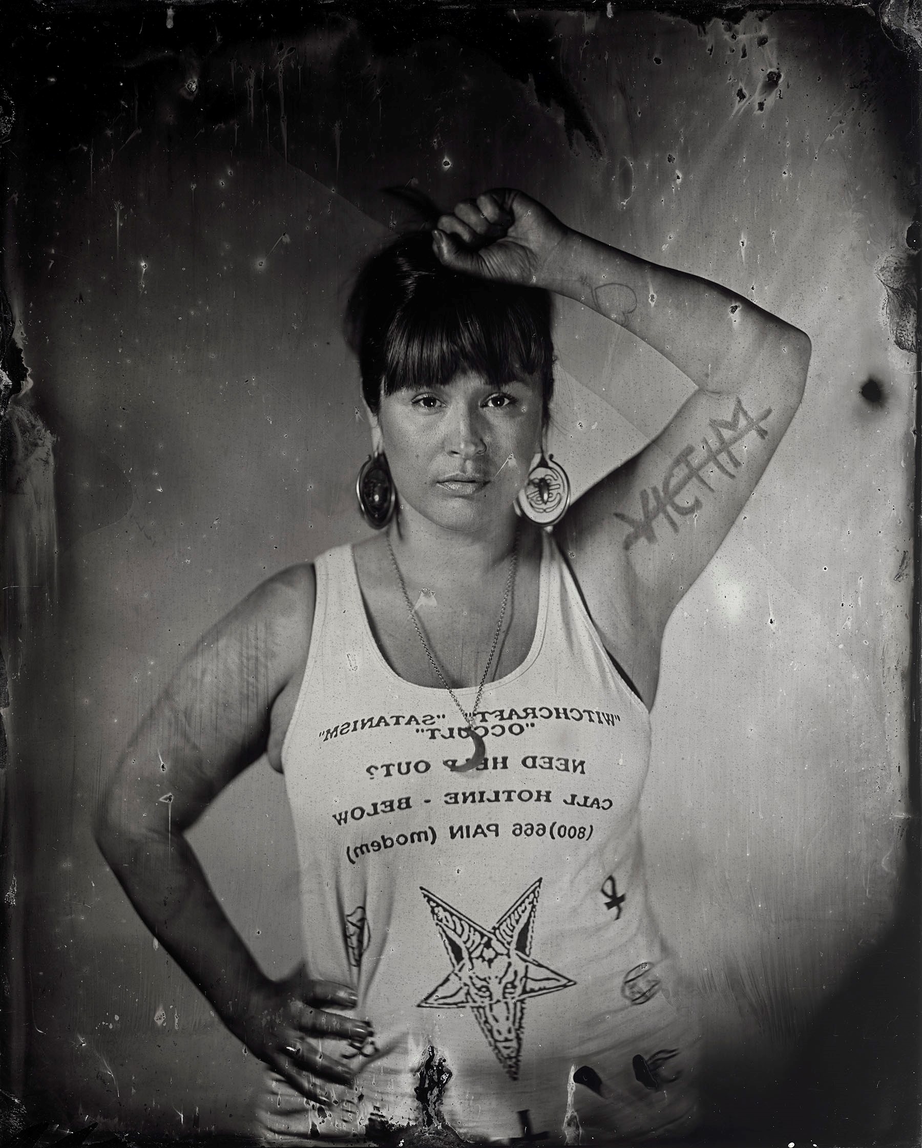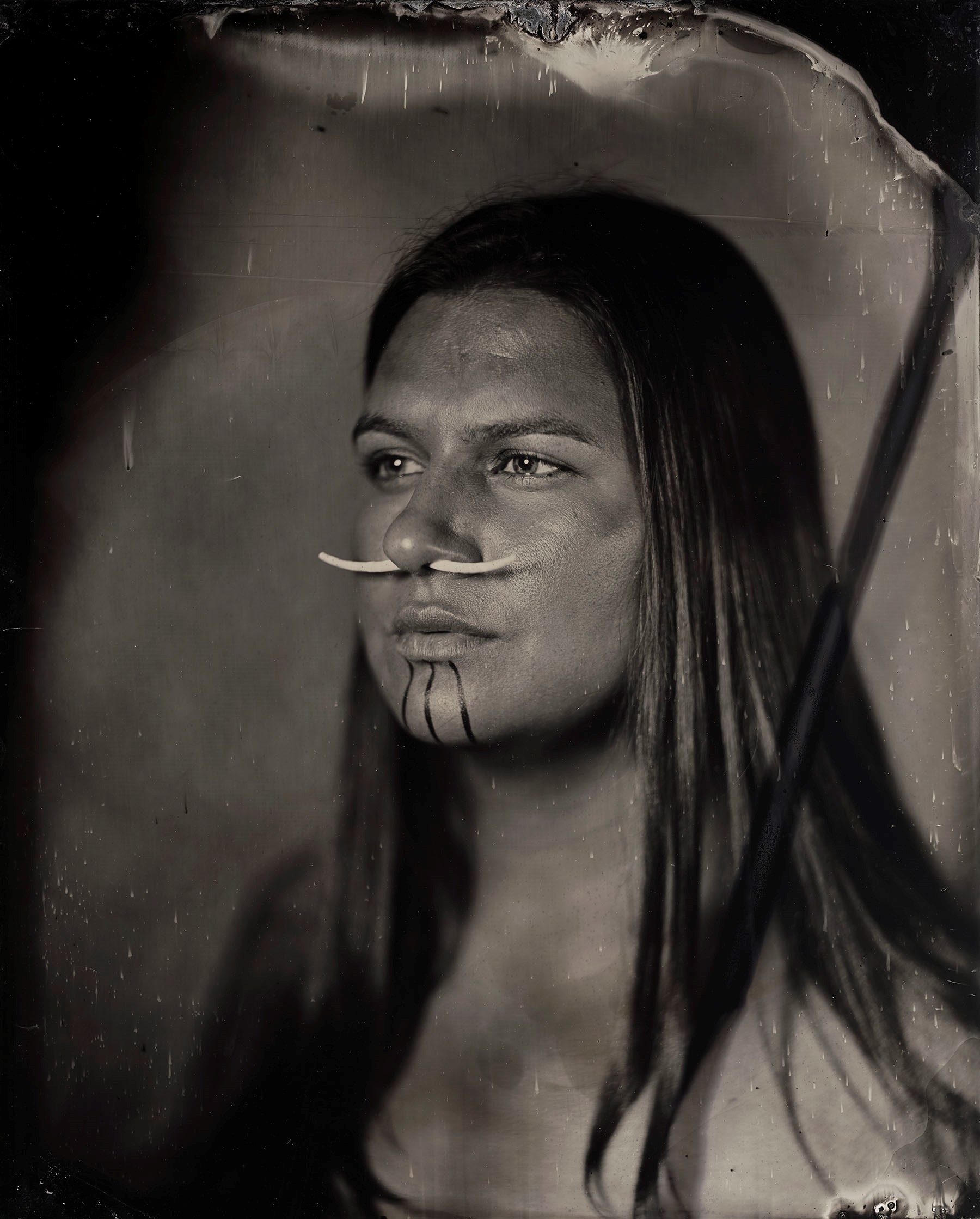 Many of our relatives were and continue to be inappropriately photographed and misrepresented. I am working to redress this from behind and in front of the lens by creating images of contemporary indigenous people from an indigenous perspective. Through the timeless lens of the tintype, and in collaboration with my subjects, the relationship between the process of creation and the person being photographed is made manifest.