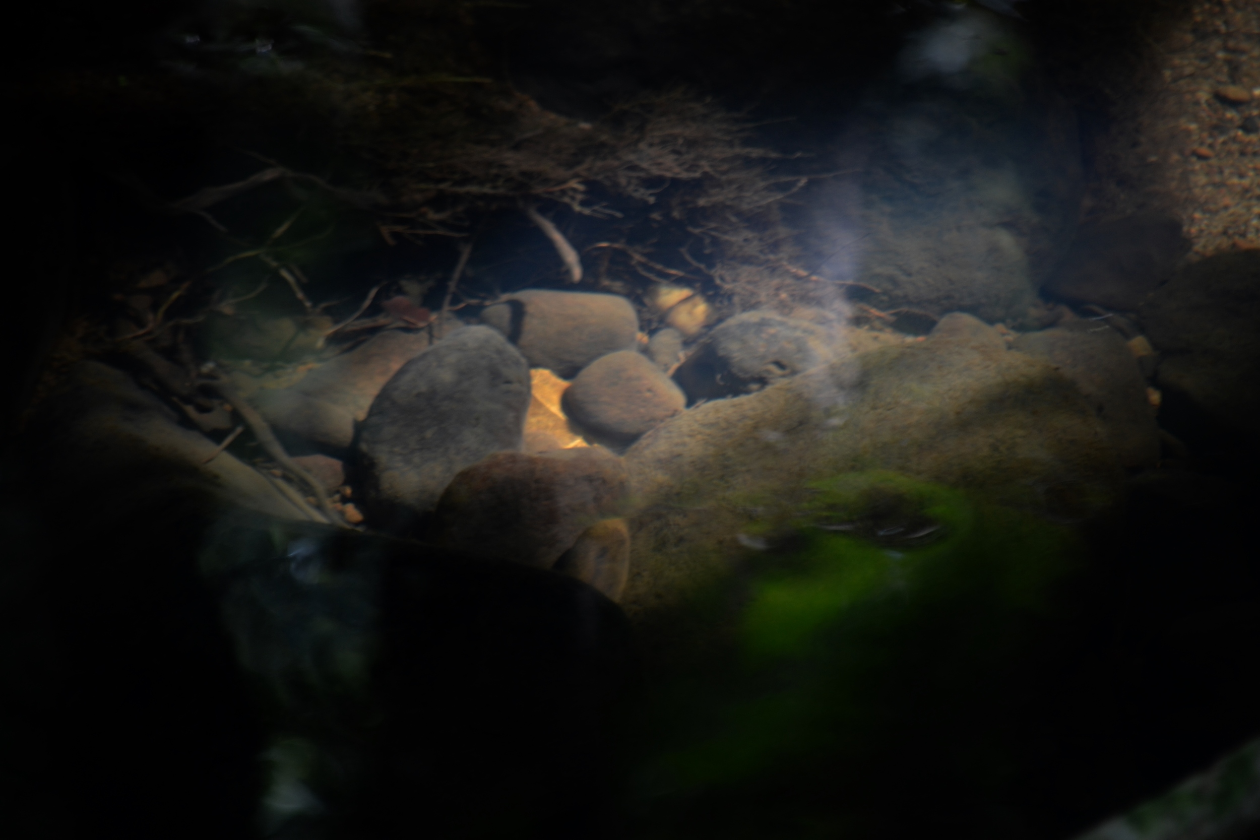 The spirit of the creek flows and dances with ethereal grace over the water, dappled by sunlight lying to rest upon the creek bed, spotlighting points beneath the gurgling water as if portals to secret tales, stories that began eons ago, only to continue to silently hold their tales, as I walk by.