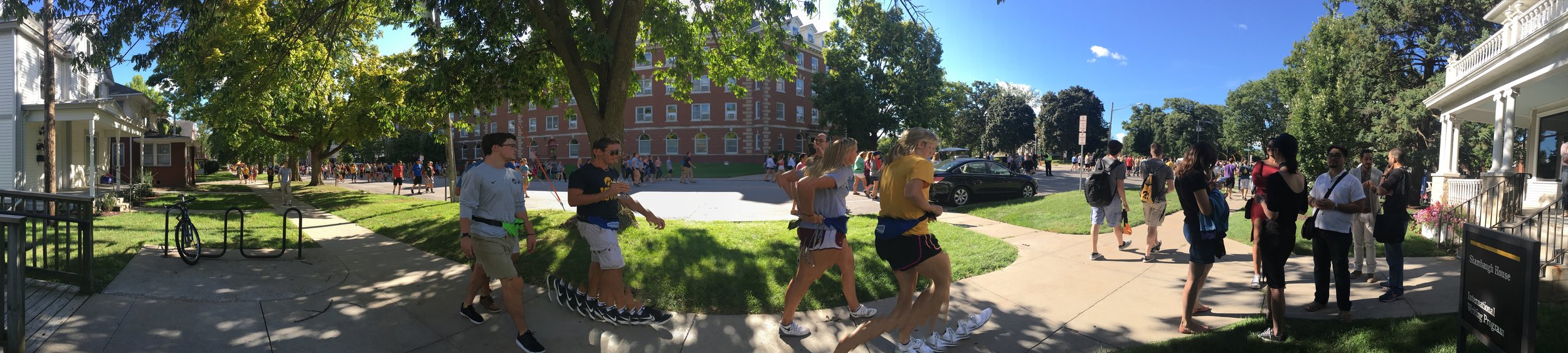 This is a photo I took on my iPhone on my second day in Iowa, on the first day of the IWP program. This is possibly the first and last time in my life that I will see thousands of teenagers all at once. In this picture there is a man with a lot of legs.